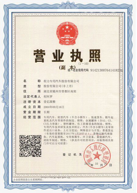 程力專用汽車股份有限公司各類專用汽車的專業(yè)廠家,大型專用汽車廠。國(guó)內(nèi)園林綠化、石油化工、市政環(huán)衛(wèi)、壓力容器專用汽車商。注冊(cè)“程力威”牌,產(chǎn)品代碼:“CLW”。東風(fēng)、解放、福田、重汽、陜汽、北奔等公司的重要合作伙伴,主要從事各類專用汽車的業(yè)務(wù),同時(shí)也銷售各大型廠家的整車及配件。公司擁有自行出口權(quán),其主導(dǎo)品種有灑水車系列、吸污(吸糞)車系列、垃圾車系列、掃地車系列、油罐加(運(yùn))油車系列、高空作業(yè)車系列、清障車系列、隨車吊系列、自卸車系列、教練車系列、半掛車系列、化工車系列、消防車系列、廂式(冷藏車)系列、牽引車系列、粉粒物料車系列、攪拌車系列、壓力容器系列、專用車配件等十八大系列300多個(gè)品種車型。同時(shí)批發(fā)東風(fēng)、解放、楚風(fēng)各種二類底盤。
